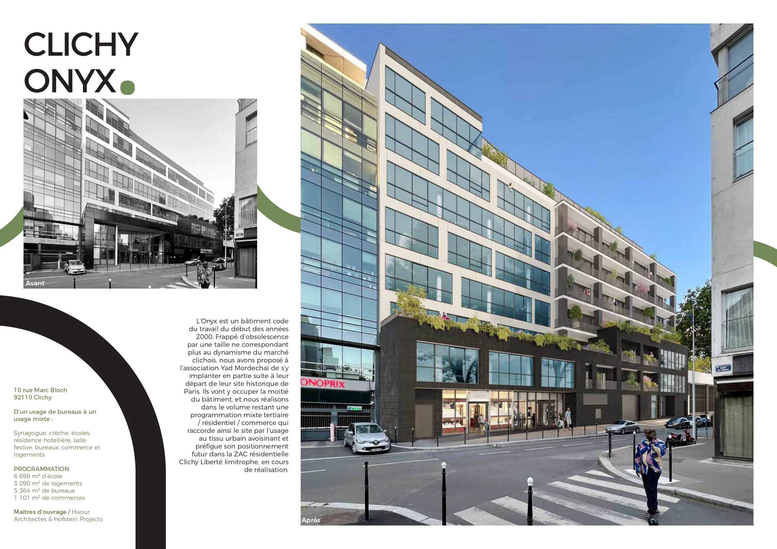 Immeuble de bureaux de taille importante, l’ONYX rencontrait de grandes difficultés à être relouer. Le projet consistait en un foisonnement du bâtiment avec une école confessionnelle pour une partie et une deuxième partie comprenant une mixite avec des bureaux, des logements libres et des commerces.